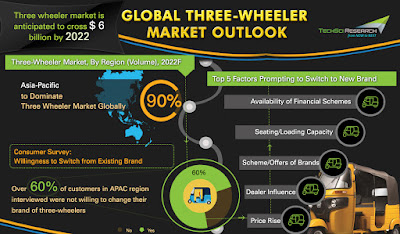 TechSci Research has been effectively engaged with offering far reaching market research information concerning different perspectives which are related to industrial reference and financial specialist utility. This specific research report titled "GLOBAL THREE WHEELER MARKET BY VEHICLE TYPE (PASSENGER CARRIER VS. LOAD CARRIER), BY FUEL TYPE (ELECTRIC, PETROL/CNG AND DIESEL), BY REGION (APAC, AFRICA, SOUTH AMERICA AND REST OF WORLD), COMPETITION FORECAST & OPPORTUNITIES, 2014 – 2024" has been added to the wide online database of TechSci Research which talks about the present and in addition future market situation. Seekers can get to information related with market volume, regional expanse as well as competitive landscape in the Global Three-Wheeler Market. With the end goal to study development patterns of the market, this study also centres around market elements, which discusses drivers, restraints, and opportunities to impact the concerned market amid the period until 2019 to 2024.